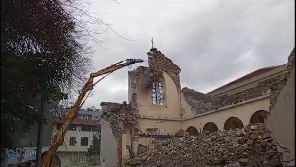 İlçede 1901 yılında inşa edilen Latin Katolik Kilisesi, 6 Şubat'ta meydana gelen Kahramanmaraş merkezli depremlerde yıkıldı. Kilisenin ön duvarı ise zorlukla ayakta kaldı. Mithat Paşa Caddesi'nde tehlikeye neden olan duvarın yıkılması için gerekli izinlerin alınmasının ardından harekete geçildi. Bugün kilisenin çevresinde güvenlik önlemi alan ekipler, iş makinesiyle duvarın yıkımını tamamladı. (DHA)