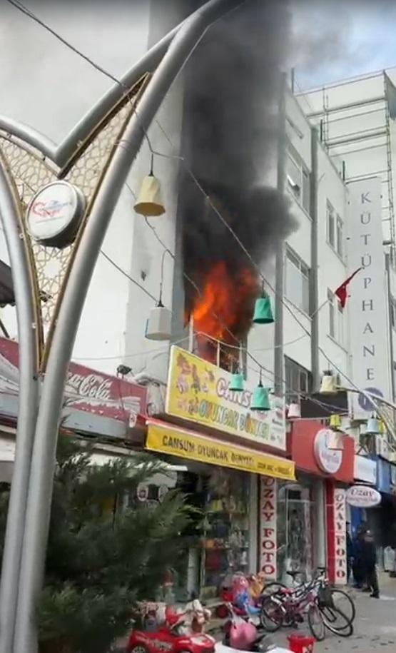 Savaş Mahallesi'nde bir binanın zemin katında oyuncak satışı yapılan iş yerinin deposunda, saat 11.00 sıralarında bilinmeyen nedenle yangın çıktı. Çalışanların ihbarıyla adrese itfaiye, sağlık ve polis ekipleri sevk edildi. Çevrede güvenlik önlemi alan ekipler, binadaki kişileri tahliye etti. Yangın, iş yerinin üst katlarına da yayıldı. İtfaiye, kısa sürede yangını söndürdü. Yangının çıkış nedeniyle ilgili inceleme başlatıldı. (DHA)