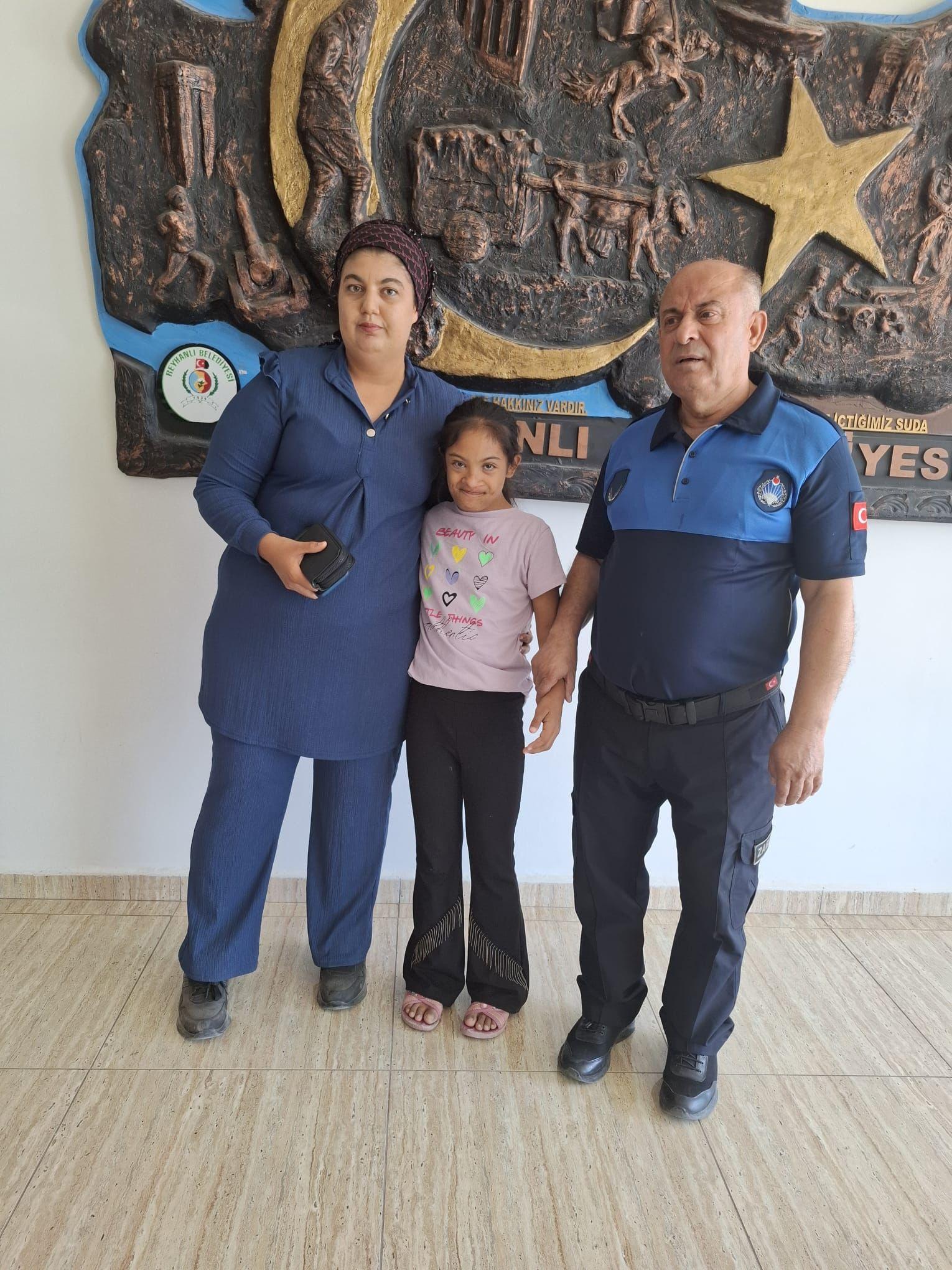 İlçedeki Cumhuriyet Mahallesi'nde Down sendromlu kız çocuğunun kaybolduğunu fark eden bir vatandaş, zabıta ekiplerine teslim etti. Kızın ailesine ulaşmaya çalışan ekipler, belediye hoparlörlerinden anons yaptı. Bir süre sonra çocuğun annesini bulan zabıta ekipleri, müdürlüğe çağırdı. Kızını teslim alan anne, ekiplere teşekkür ettikten sonra müdürlükten ayrıldı. (DHA)
