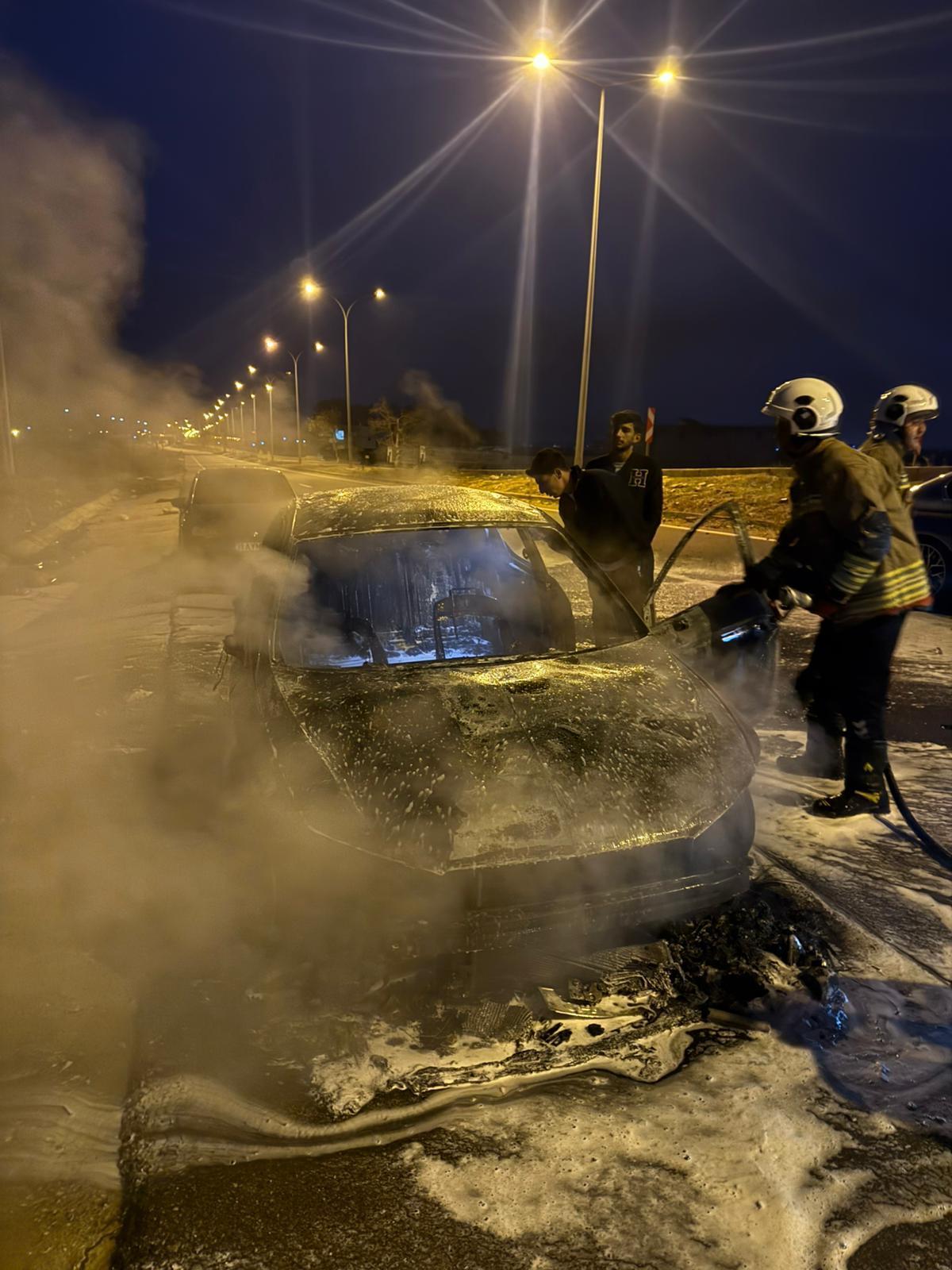 Reyhanlı ilçesinin Harran mahallesinde seyir halindeki otomobilin motor bölümünden bir anda alevler yükselmeye başladı. Alevleri fark eden sürücü araçı, güvenli alana park edip, yardım çağrısı yaptı. Olay yerine gelen itfaiye ekiplerinin müdahale ettiği otomobildeki yangın kısa sürede söndürüldü. Otomobilde madde hasar meydana gelirken, yangının çıkış nedeninin belirlenmesi için inceleme başlatıldı. (DHA)