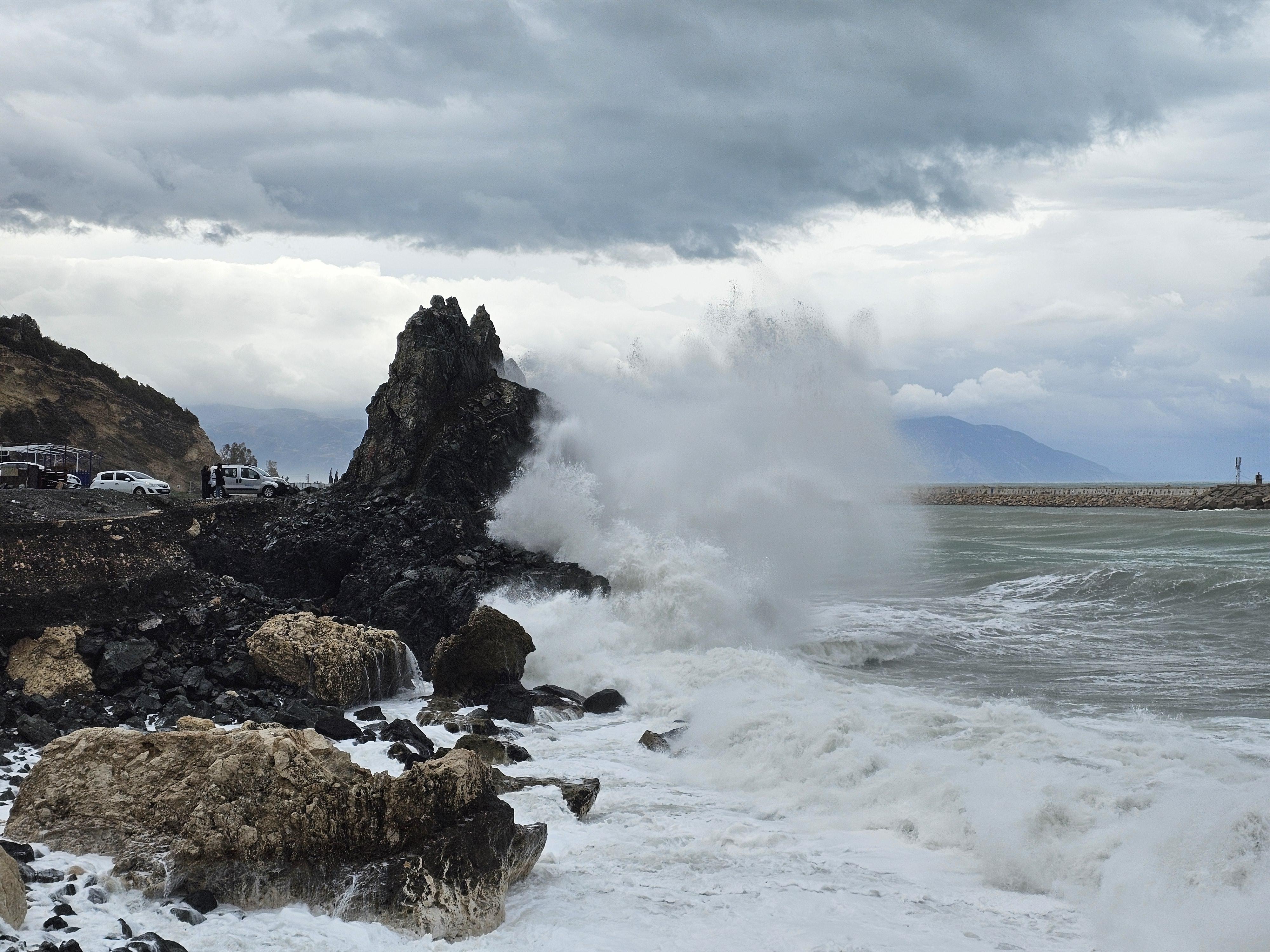 Hatay'da dalgalar güzel görüntüler oluşturdu