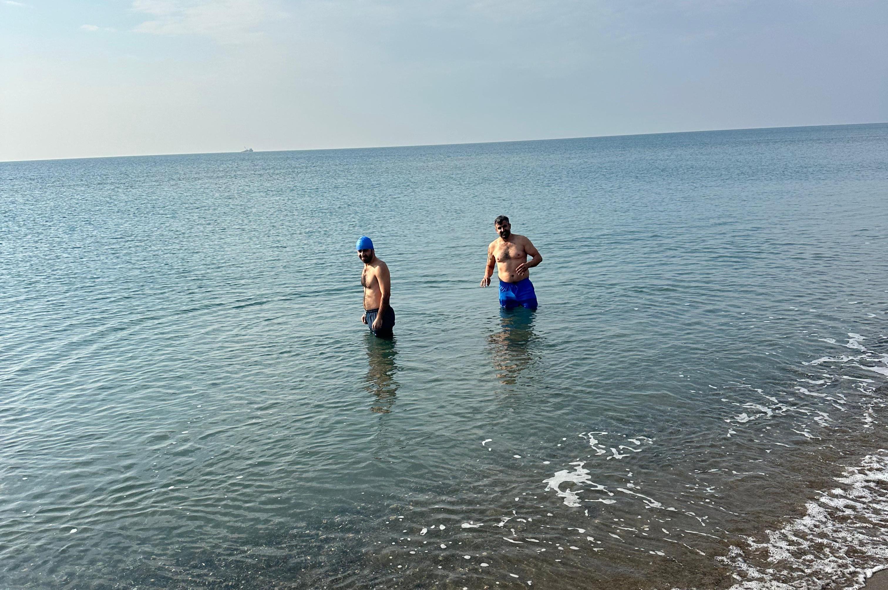 Sabah saatlerinde Samandağ ilçesindeki plajda denize giren Ahmet Zahid Çökmez ve Burak Kimyonşan, hava sıcaklığının 11 derece olduğu bölgede soğuğa aldırmadan yaklaşık 1 saat yüzdü. İkilinin beraber sahile geldiği arkadaşlarının cep telefonuyla çekip, sosyal medyada paylaştığı video, bölgede büyük ilgi çekti. Gazetecilerin sorularını cevaplayan ve sağlık için yüzdüklerini söyleyen Kimyonşan, "Sağlık için yüzdük, daha önce de bunu yapıyorduk. Biz yüzerken insanlar bize bakıyordu. Bazıları sordu nasıl soğuk mu diye. Aslında denize girdikten sonra alışıyor insan. Herkese öneririz" dedi.