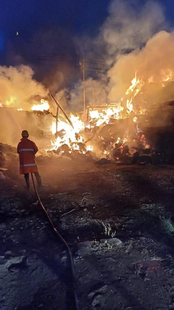Iğdır'da 2 ahır ile 8 bin balya ot alev alev yandı