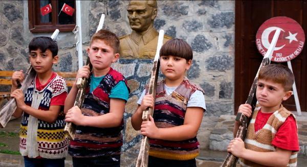 Özkan AYDIN/IĞDIR, (DHA)- IĞDIR Şehit Havacı Er Nurettin Manaz İlkokulu'ndaki 5 öğrenci, Cumhuriyet'in Kurucusu Büyük Önder Mustafa Kemal Atatürk'ün ebedi istirahatgahı Anıtkabir'deki saygı nöbetini köylerinde canlandırdı.