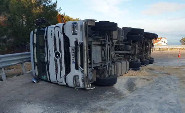 Kemal ERBEN/EĞİRDİR, (DHA) - ISPARTA'nın Eğirdir ilçesinde bisküvi tozu yüklü tırın yan yattığı kazada sürücü yaralandı.