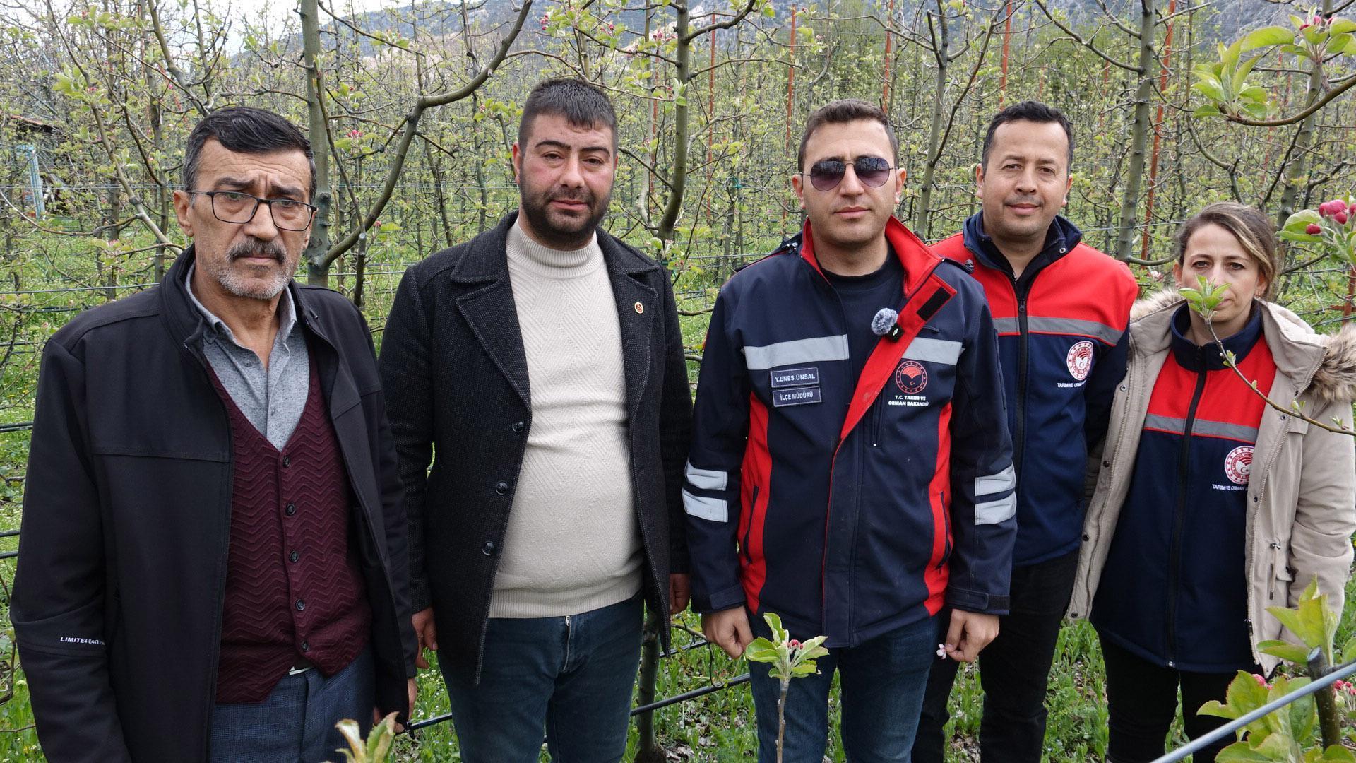 İlçe Müdürü Yahya Enes Ünsal, "29 köy ve 1 beldemize 3 ekip halinde dağılarak incelemeye başladık. Şöyle bir sıkıntı var yüzde 100 açan çiçeklerde dişi kısımlarında don nedeniyle siyahlaşma var, don olayından yüzde 100 etkilenmiş durumda, kapalı olan çiçeklerde herhangi bir sıkıntı yok. Yüzde 5-10 civarında bir açılış var. Açan çiçeklerin hepsi etkilenmiş değil, 'Pink Lady' elma çeşidimizde yüzde 10 zarar var. İlçemizde yaşanan düşük sıcaklıkların sahada oluşturduğu durumu belirlemek için şu ana kadar yaptığımız gözlemlerde pembe tomurcuk döneminde olan elmalarda zirai don tehlikesi gözlemlenmemiştir. Gül yüzde 20-30 ve kiraz, şeftali, kayısı gibi türlerde yaklaşık yüzde 40-50 arasında bir zarar oluştuğu kanaatindeyiz. Zararın son durumunu ekiplerin dönmesiyle daha net belirleyeceğiz. Bölge çiftçimizin 24 saat hizmetindeyiz, bir telefon kadar yakınız" dedi. (DHA)
