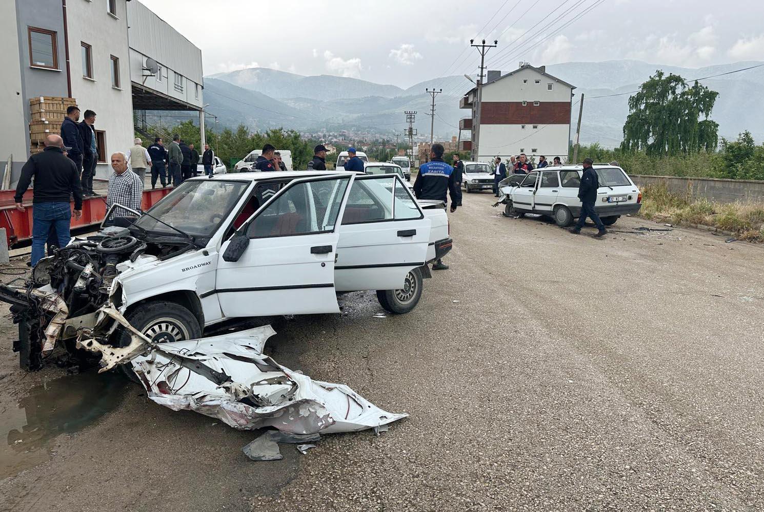 Kaza, saat 09.30 sıralarında Dörtyol mevkiinde meydana geldi. Kadir Aydemir yönetimindeki 32 KC 384 plakalı otomobil ile Ruşti Akçay yönetimdeki 32 ACM 138 plakalı otomobil kafa kafaya çarpıştı. Sürücüler ile 32 ACM 138 plakalı otomobilde bulunan Halil Akçay'ın yaralandığı kazanın ardından olay yerine kurtarma ekipleri sevk edildi. Yaralılara ilk müdahale olay yerinde yapılırken, Halil Akçay sıkıştığı yerden itfaiye ekipleri tarafından kurtarıldı. 3 yaralı ambulanslarla ilçedeki hastaneye sevk edildi. Kazayla ilgili inceleme başlatıldı. (DHA)