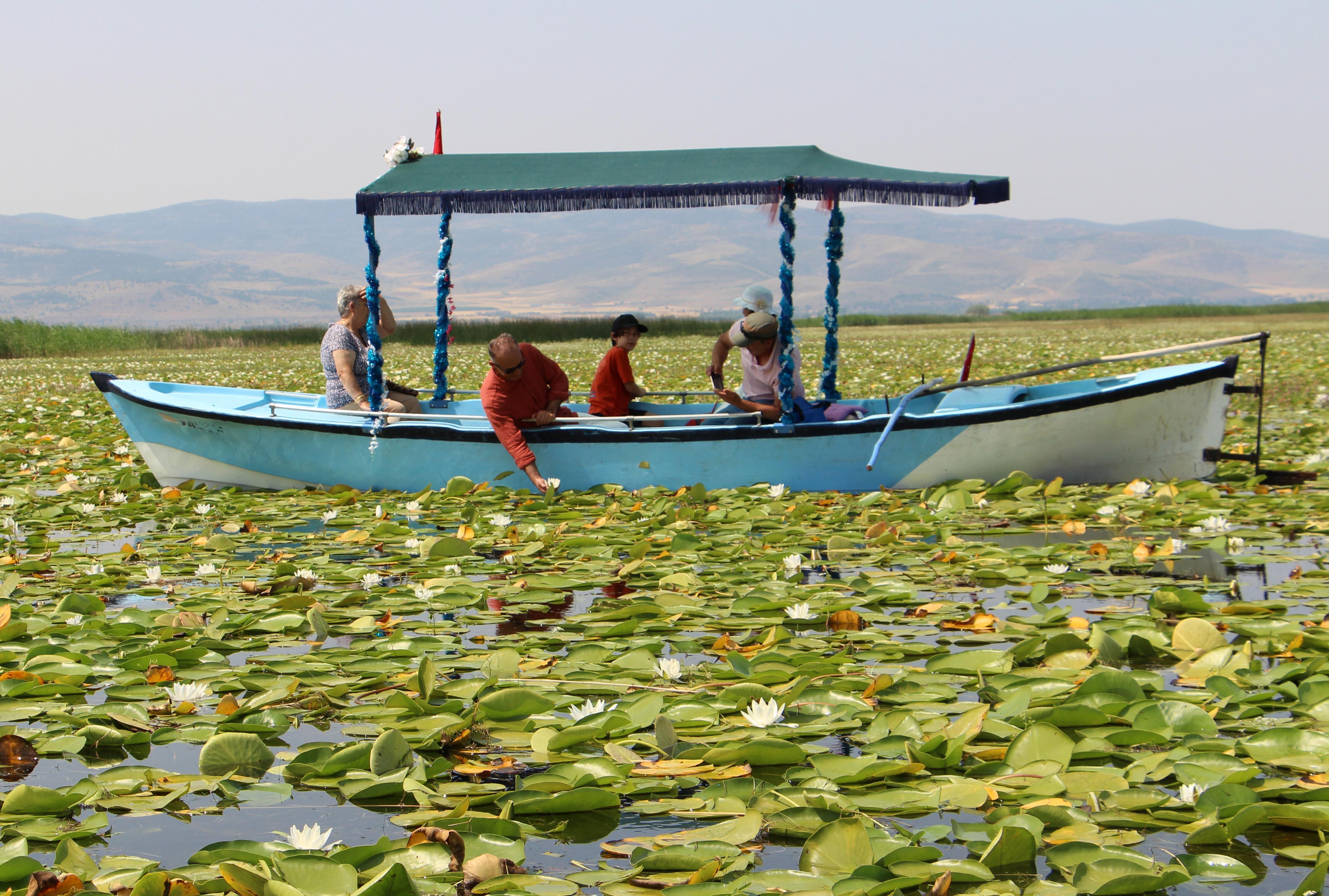 Yöre halkının kurduğu su ürünleri kooperatifine kayıtlı 50 tur teknesiyle gölde gezintiye çıkan ziyaretçiler, manzaranın güzelliğiyle nilüfer çiçeklerinin fotoğrafını çekerek eğlenceli vakit geçiriyor. Gölde 4 kişilik teknelerle geziye çıkanlar, 1 saatlik turda sahilden yaklaşık 2 kilometre ilerideki nilüferler arasında mola verip farklı türde kuşları gözlemle fırsatı buluyor. Balık restoranının yer aldığı göl kenarında yöre halkı tarafından kurulan işletmelerde gözleme yenilip demli çay içilebiliyor.