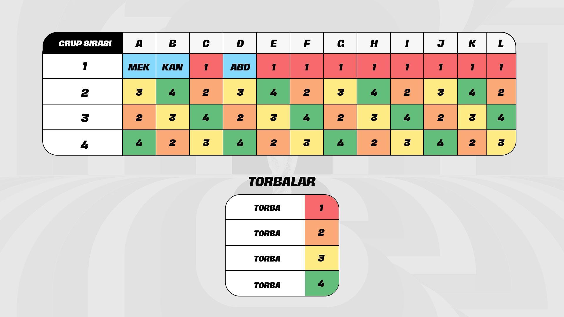 -Kura Çekimi'nde sırasıyla 1, 2, 3 ve 4'üncü Torba takımları yerleştirilecektir."