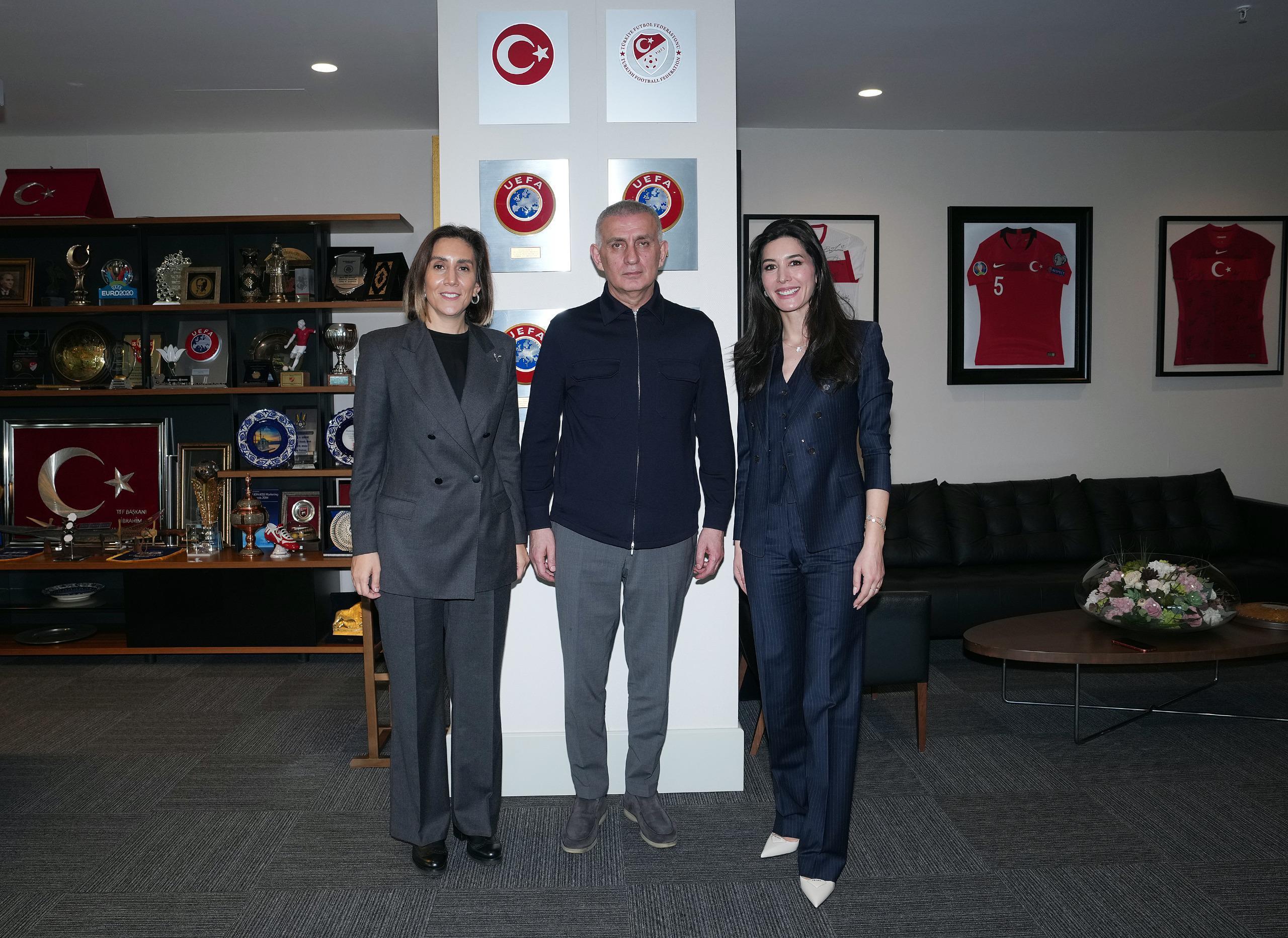 Beşiktaş Yönetim Kurulu Üyesi Merve Öztopaloğlu ile Trabzonspor Yönetim Kurulu Üyesi Gözde Atasoy, geçtiğimiz günlerde Türkiye Futbol Federasyonu Başkanı İbrahim Ethem Hacıosmanoğlu’nu makamında ziyaret etti. Hacıosmanoğlu, Öztopaloğlu ile Atasoy’a “Çalışmalarınızda her türlü desteğe hazırız” mesajı verdi.