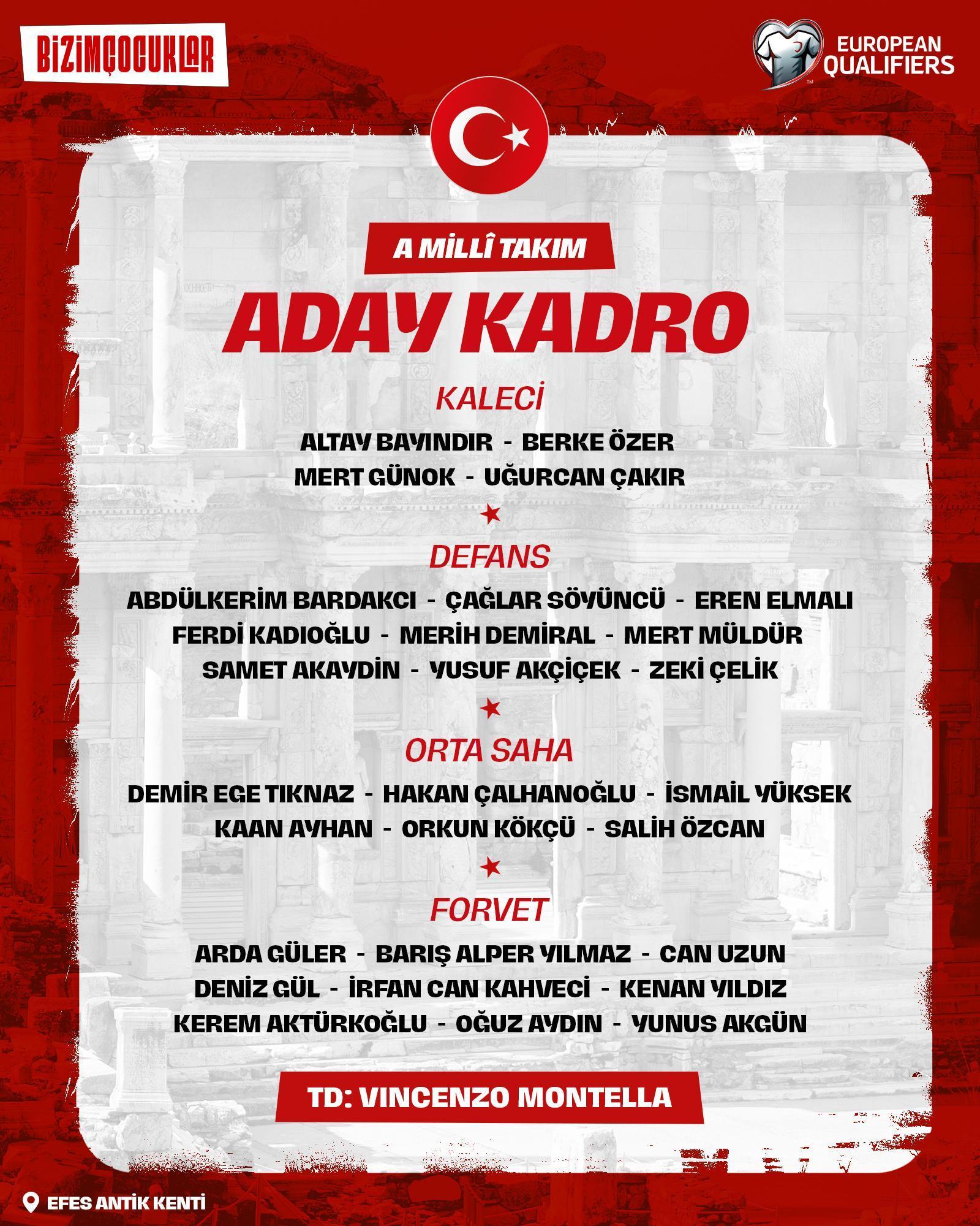 İSTANBUL, (DHA)- 2026 FIFA Dünya Kupası Elemeleri'ne 4 Eylül'de deplasmanda Gürcistan ve 7 Eylül'de Konya'da İspanya ile oynayacağı maçlarla başlayacak A Millî Takımımızın aday kadrosu ve programı açıklandı.