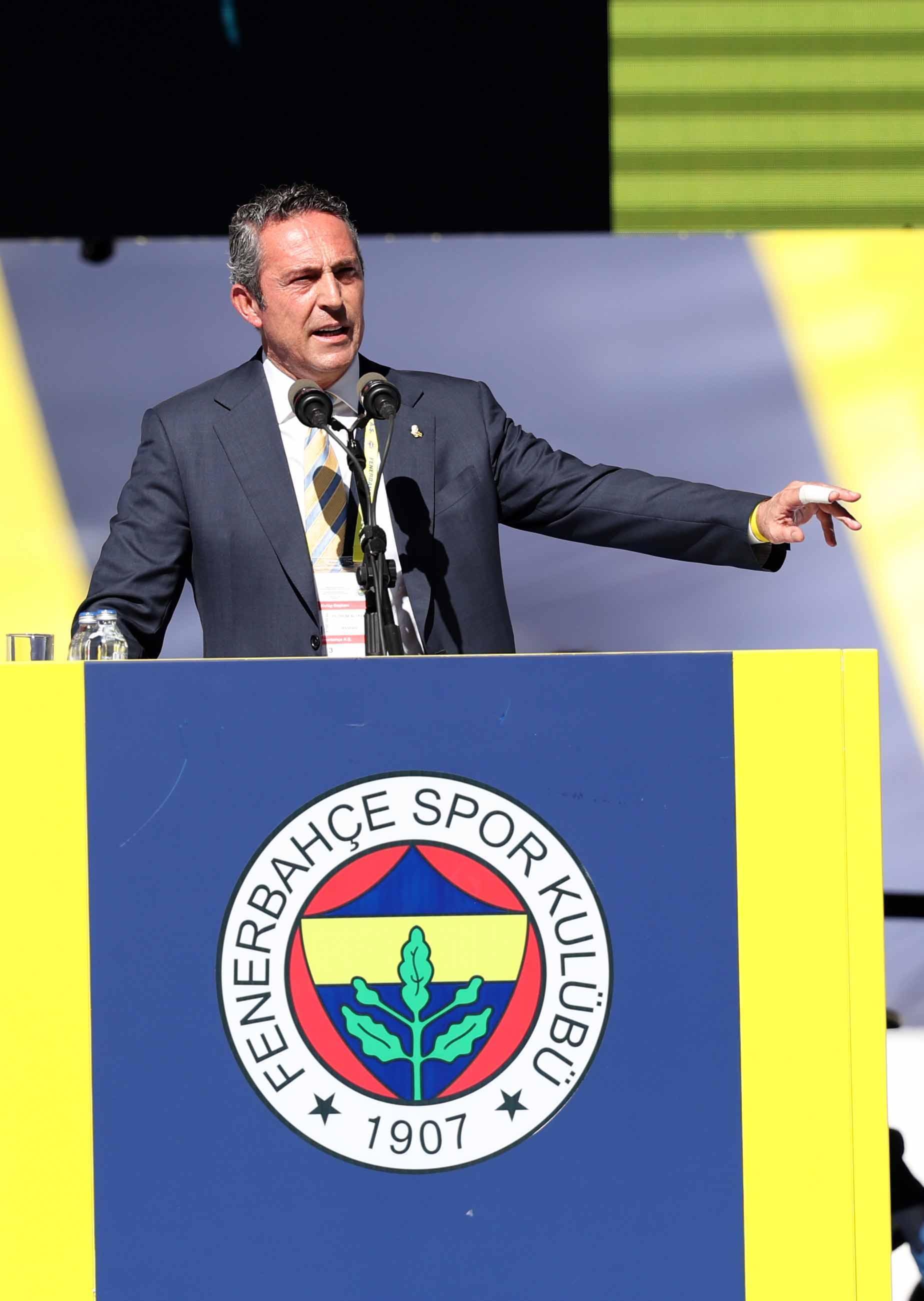 Aziz Yıldırım, Olağan Seçimli Genel Kurul’dan erken ayrıldığı için söylemek istediği bazı şeyleri söylemeyeceğini ifade eden Başkan Ali Koç, “Burada çok şey anlatıp çok şey söyleyecektim. Bugüne kadar 3-5 bilemediniz 10 kişinin bildiği şeyleri istemeyerek, 6 yıl boyunca içime attığım konuları sizlerle paylaşacaktım. Ben mertçe mücadele eden, insanların gözünün içine bakarak savaşan biri olduğumdan, söyleyeceğim kişi burada olmadığından mertçe söyleyemeyeceğim için ne kadarını söyleyebilirim emin değilim” ifadelerini kullandı.