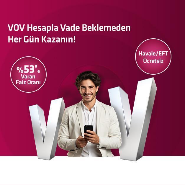 Müşteriler, paralarını diledikleri an çekip yatırabilirken EFT, FAST ve havale gibi temel bankacılık işlemlerini de dijital kanallar üzerinden ücretsiz olarak gerçekleştirebiliyor. Resmi tatil ve hafta sonlarında da günlük faiz kazandıran VOV Hesap, aynı zamanda yüksek mevduat faiz oranlarıyla birikimlere değer katıyor. Tüm hesapların VOV Hesap olarak açılmasıyla müşteriler günlük faiz geliri elde ederken yeni müşterilere özel, 45 gün boyunca yüzde 53 hoş geldin faizi sunuluyor.
