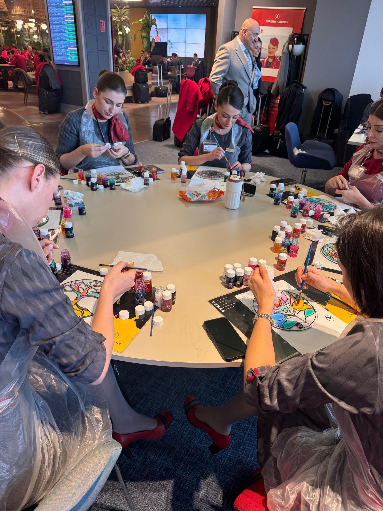 THY'de görev yapan kadın pilotlar ve kabin memurları 8 Mart Dünya Kadınlar günü nedeniyle düzenlenen iftar yemeğinde bir araya geldi. İftar yemeğine katılan THY Yönetim Kurulu ve İcra Komitesi Başkanı Prof. Dr. Ahmet Bolat, personelleriyle sohbet etti. İftar yemeğiyle ilgili detaylar hakkında sosyal medya hesabından bir açıklama yapan Bolat, yemek öncesi çini ve vitray atölyesinde bulunan personelin ürettiği eserlerin, ekip terminalinde sergileneceğini açıkladı.