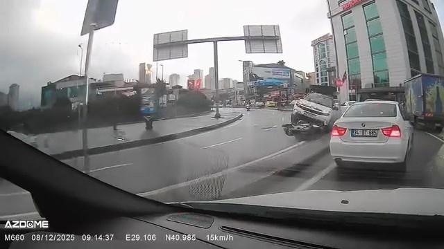 İstanbul - Ataşehir’de motosiklete çarpan otomobil takla attı; ölümden döndü