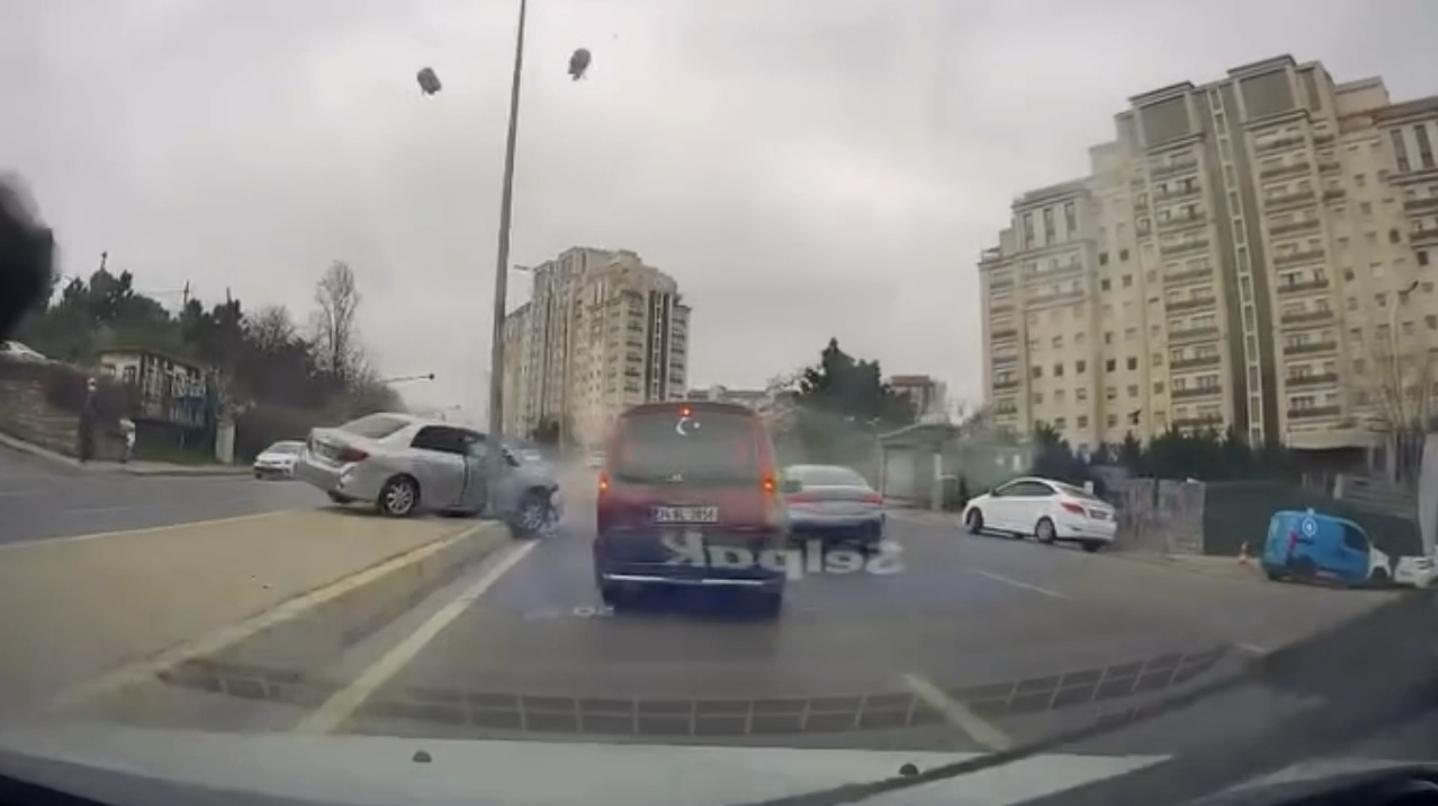 Kaza, dün saat 16.00 sıralarında Kayışdağı Caddesi'nde meydana geldi. İddiaya göre, sürücüsünün direksiyon hakimiyetini kaybettiği seyir halindeki otomobil yoldaki aydınlatma direğine çarptı. Bunun üzerine direk, yola devrildi. Bu sırada karşı yönden gelirken direğin devrildiğini gören hafif ticari aracın sürücüsü manevra yaparak kazadan kurtuldu. Kaza anı araç kamerasıyla kaydedildi. (DHA)