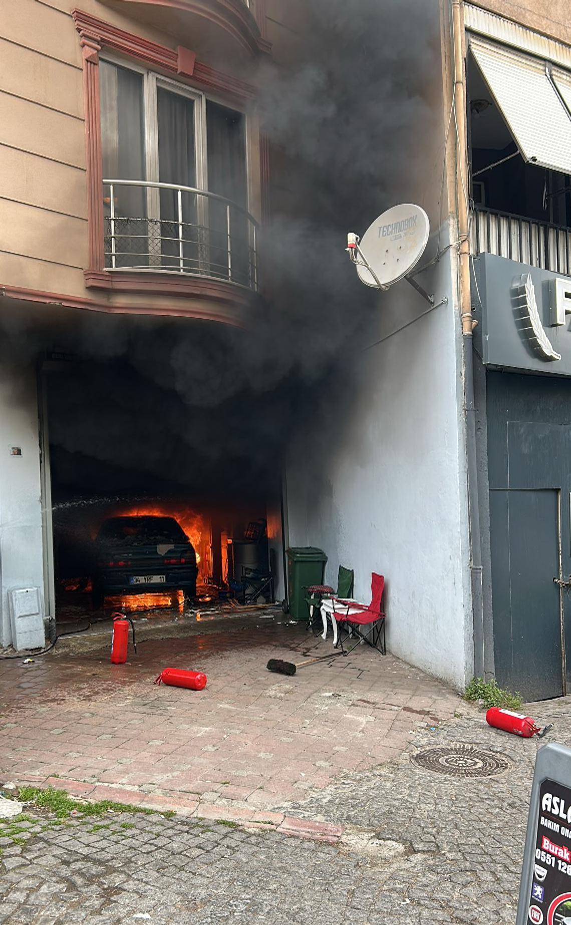 İstanbul- Ataşehir'de tamirhanedeki otomobil alev alev yandı