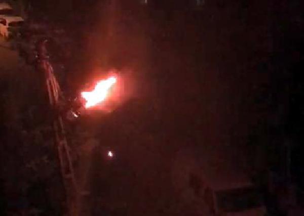 Avcılar'da yanan elektrik direği mahalleliyi korkuttu