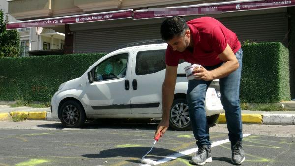 Avcılar'da yoldaki kasise uyarı çizgilerini esnaf çekti
