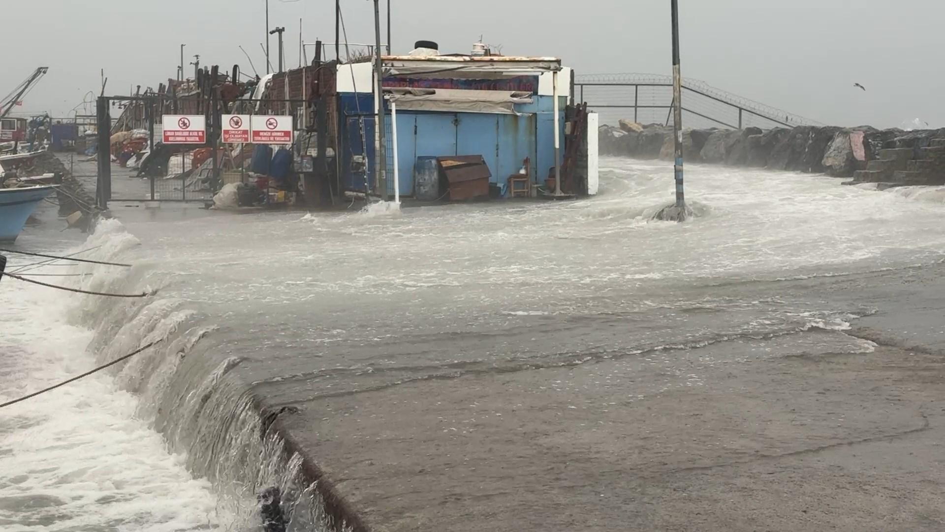 Avcılar’da fırtına dalgaların yaklaşık 5 metre yükselmesine neden oldu. Avcılar Balıkçı Barınağı’ndaki kayalıkları aşan dalgalar nedeniyle balıkçılar tekne ve sandallarını kurtarmaya çalıştı. Dalgalar, mendirek ile barınak arasındaki bölümü göle çevirdi.
