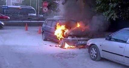 İstanbul - Avcılar'da park halindeki otomobil alev alev yandı