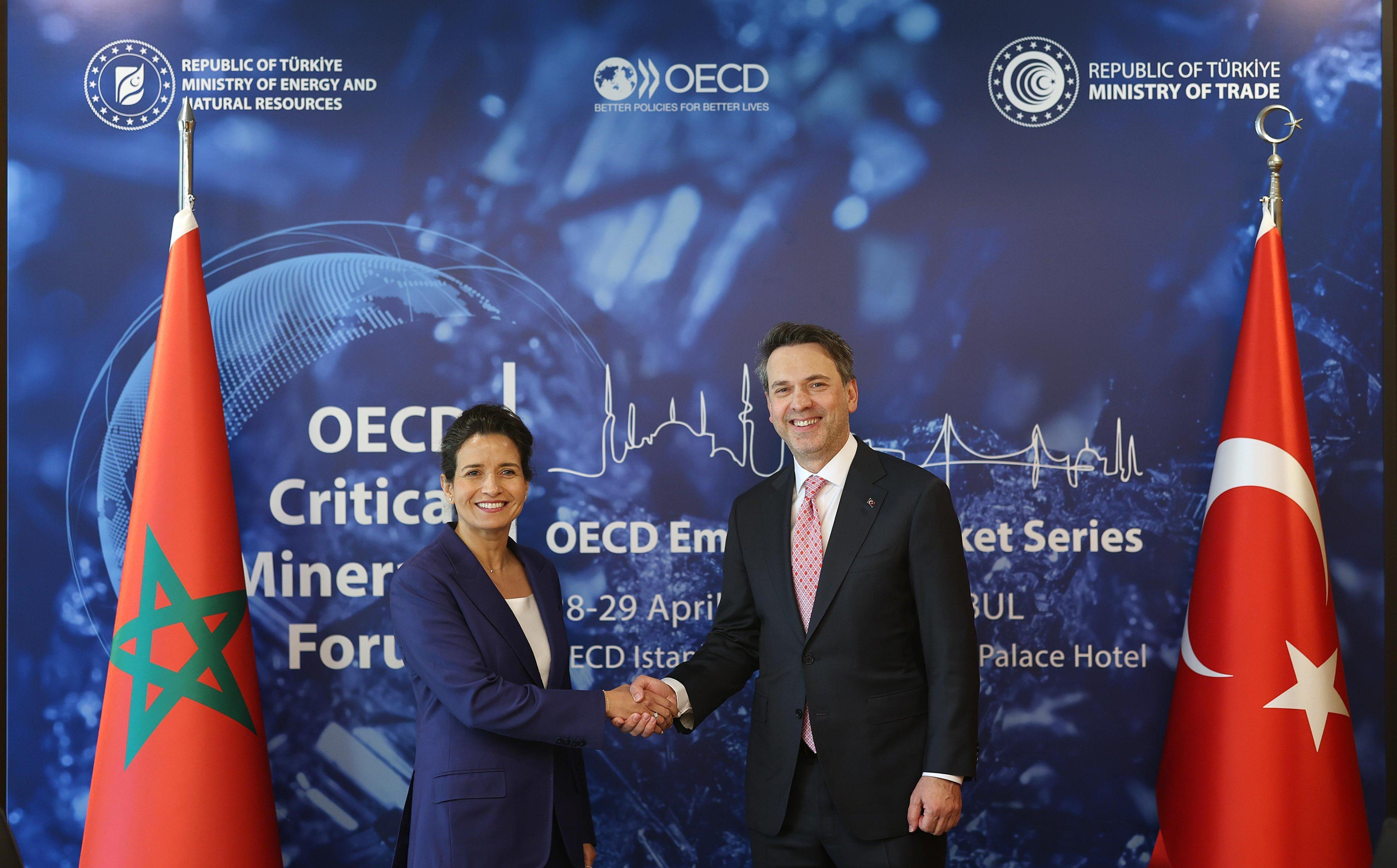 İSTANBUL,(DHA)- ENERJİ ve Tabii Kaynaklar Bakanı Alparslan Bayraktar, 'OECD Kritik Mineraller Forumu' kapsamında Fas Enerji Dönüşümü ve Sürdürülebilir Kalkınma Bakanı Leila Benali ile İstanbul'da bir araya geldi.