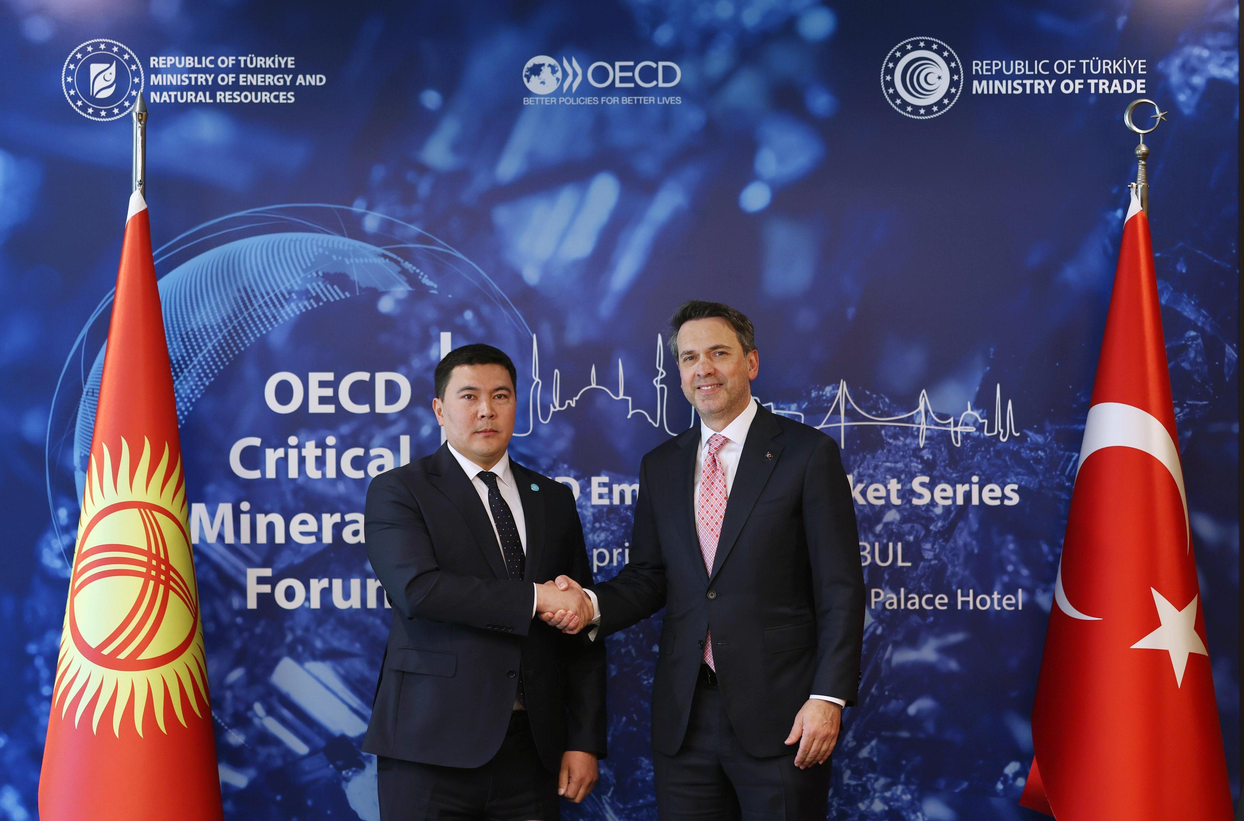 İSTANBUL,(DHA)- ENERJİ ve Tabii Kaynaklar Bakanı Alparslan Bayraktar, 'OECD Kritik Mineraller Forumu' kapsamında Kırgızistan Doğal Kaynaklar, Ekoloji ve Teknik İşler Bakanı Akyl Toktobaev ile İstanbul'da bir araya geldi.