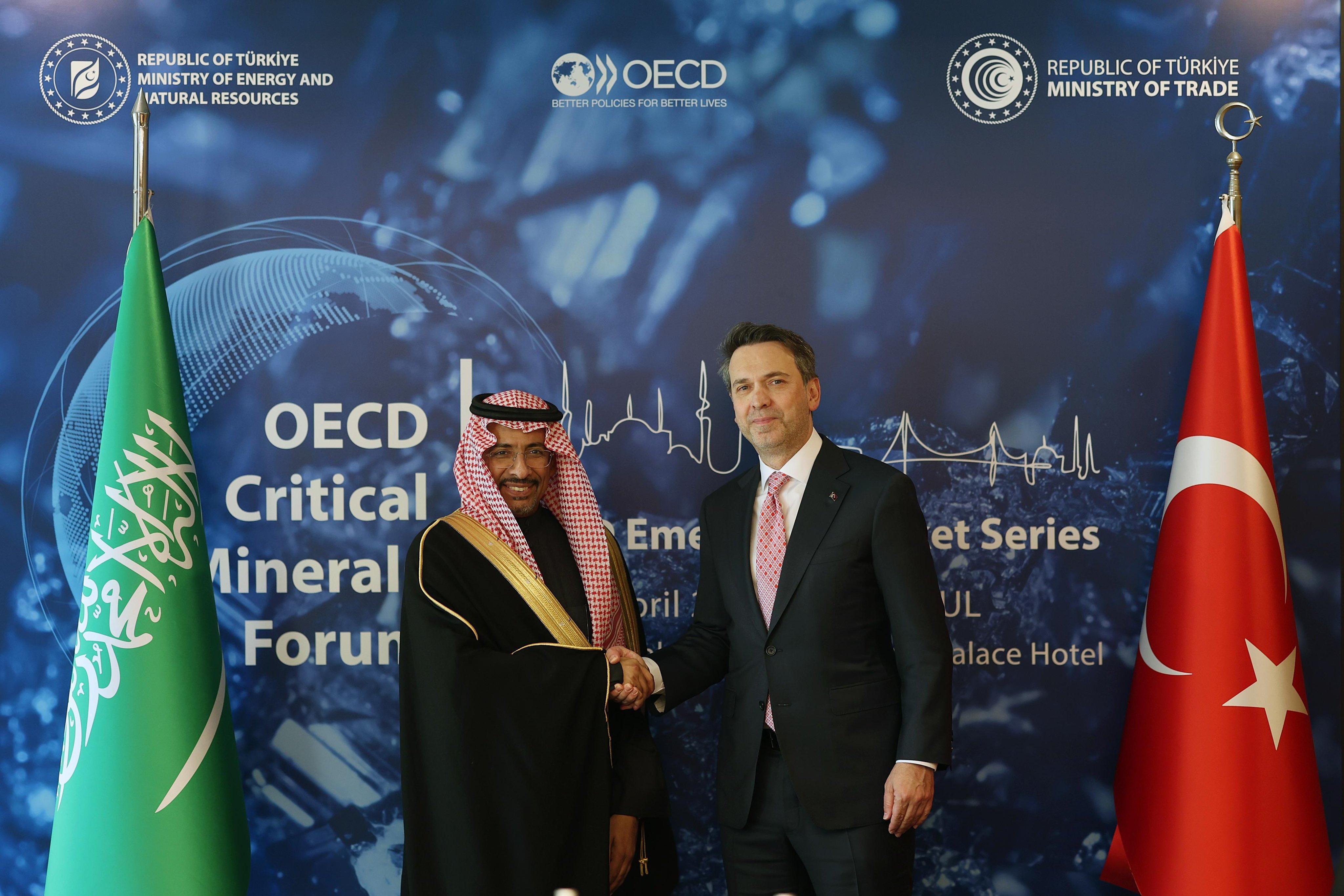 İSTANBUL,(DHA)- ENERJİ ve Tabii Kaynaklar Bakanı Alparslan Bayraktar, 'OECD Kritik Mineraller Forumu' kapsamında Suudi Arabistan Sanayi ve Maden Kaynakları Bakanı Bandar bin İbrahim Al-Khorayef ile İstanbul'da bir araya geldi.