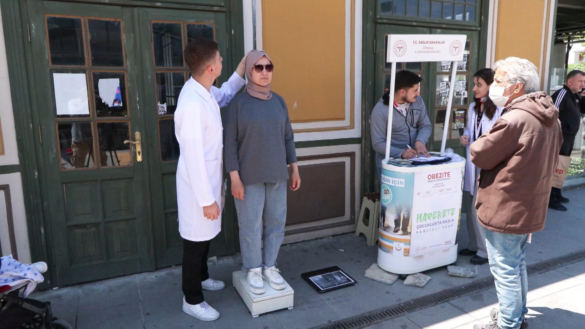 Gülseren KARAPINAR-Harun ŞAHBAZOĞLU/İSTANBUL,(DHA)- BAKIRKÖY'de Sağlık Bakanlığı tarafından başlatılan 'İdeal Kilonu Öğren, Sağlıklı Yaşa' projesi kapsamında katılımcıların boy ve kilo ölçümlerini yapılarak vücut kitle indeksi (VKİ) hesaplandı.