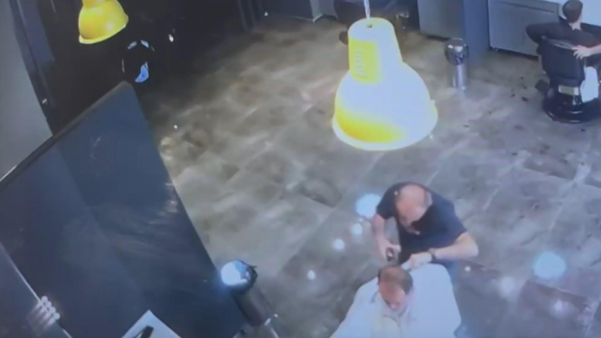 Saç kesimi yarım kalan müşteri deprem sonrası iş yerine girmek istemeyince Mesut Yalvaç iş yerinin önünde sandalyede müşterinin saç kesimini tamamladı. O anlar çevredeki vatandaşların cep telefonu kamerasına yansıdı.