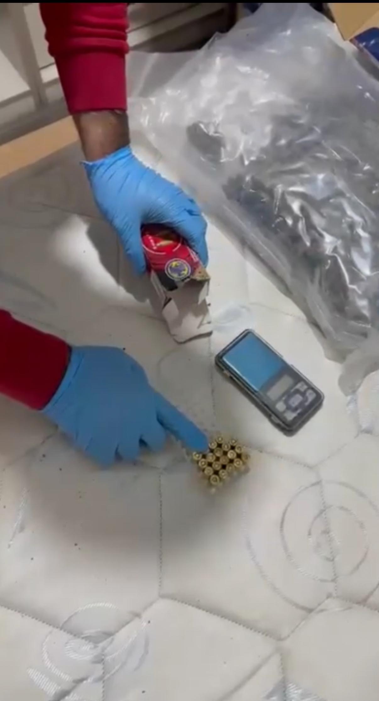 Adreste yapılan aramalarda toplamda 4 bin 144 adet kırmızı reçeteli hap, 41,4 gram kokain, 921,2 gram esrar, 19 adet fişek, 2 hassas terazi, 15 kilitli poşet ve 3 bin 575 lira nakit para ele geçirildi. Operasyon anları cep telefonu kamerasına yansıdı. Evde yakalanan K.S.’nin açık cezaevinden izinli çıktığı ve cezaevine geri dönmediği belirlendi.