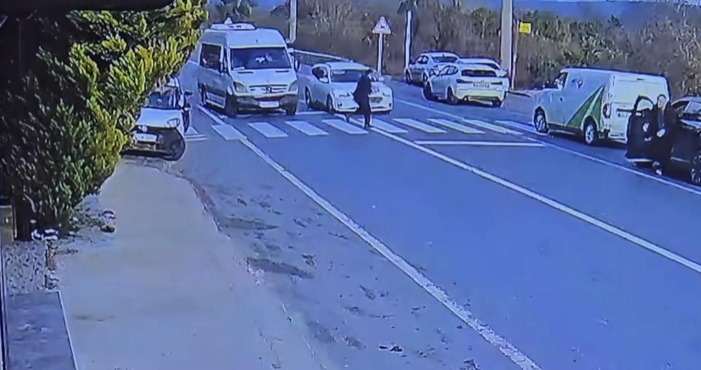 Görüntülerde, minibüsün yaya geçidinde durduğu, yayanın geçmek istediği sırada arkadan gelen otomobilin hızla sollama yaparak çarptığı anlar yer aldı.