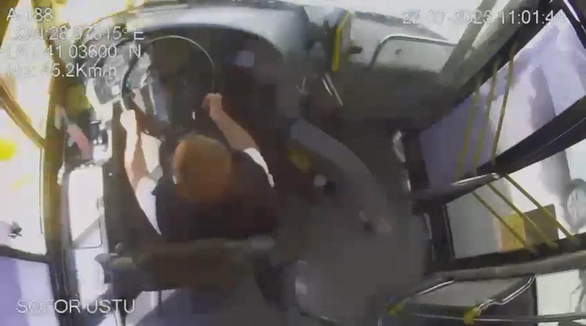 OTOBÜS HAREKET HALİNDEYKEN ŞOFÖR AYAĞA KALKTI