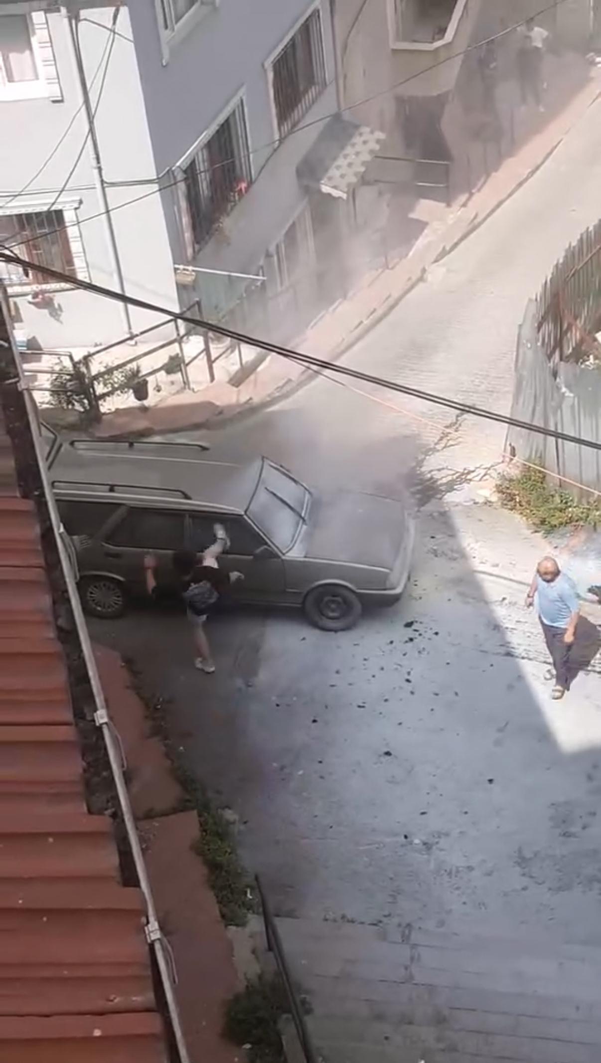Olay, dün saat 11.00 sıralarında Piripaşa Mahallesi’nde meydana geldi. Edinilen bilgiye göre sokakta ilerleyen Ramazan Ö.‘nün 34 TC 2698 plakalı otomobilin motor kısmında yangın çıktı. Dumanların yükseldiğini gören sürücü dışarı çıkarak çevredekilerden yardım istedi. Sürücünün yardımına koşan çevre sakinleri, yangın söndürme tüpüyle motordaki alevlere müdahale etti. Bu sırada öfkelenen sürücü Ramazan Ö., koşarak aracının camına defalarca tekme attı. Aracın camlarının kırılmasının ardından otomobilin arka bölümüne yönelen sürücü bu kez de aracın arka camını kırdı.