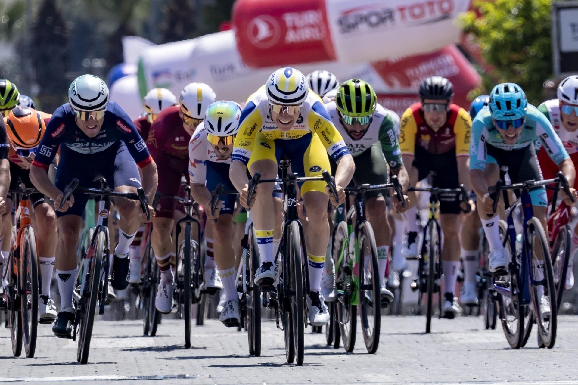 İZMİR, (DHA)- BU sene 61'inci kez koşulan Cumhurbaşkanlığı Türkiye Bisiklet Turu'nun 154.7 kilometrelik Çeşme-Selçuk etabını Team Flanders-Baloise Takımı'ndan Tom Crabbe 3 saat 23 dakika 57 saniye ile kazandı. Konya Büyükşehir Belediyespor Takımı'ndan Ramazan Yılmaz tekerlek farkı ile 4'üncü olarak uzun süre unutulmayacak bir başarı elde etti ve 12 puan kazanarak mayo şansını artırdı.