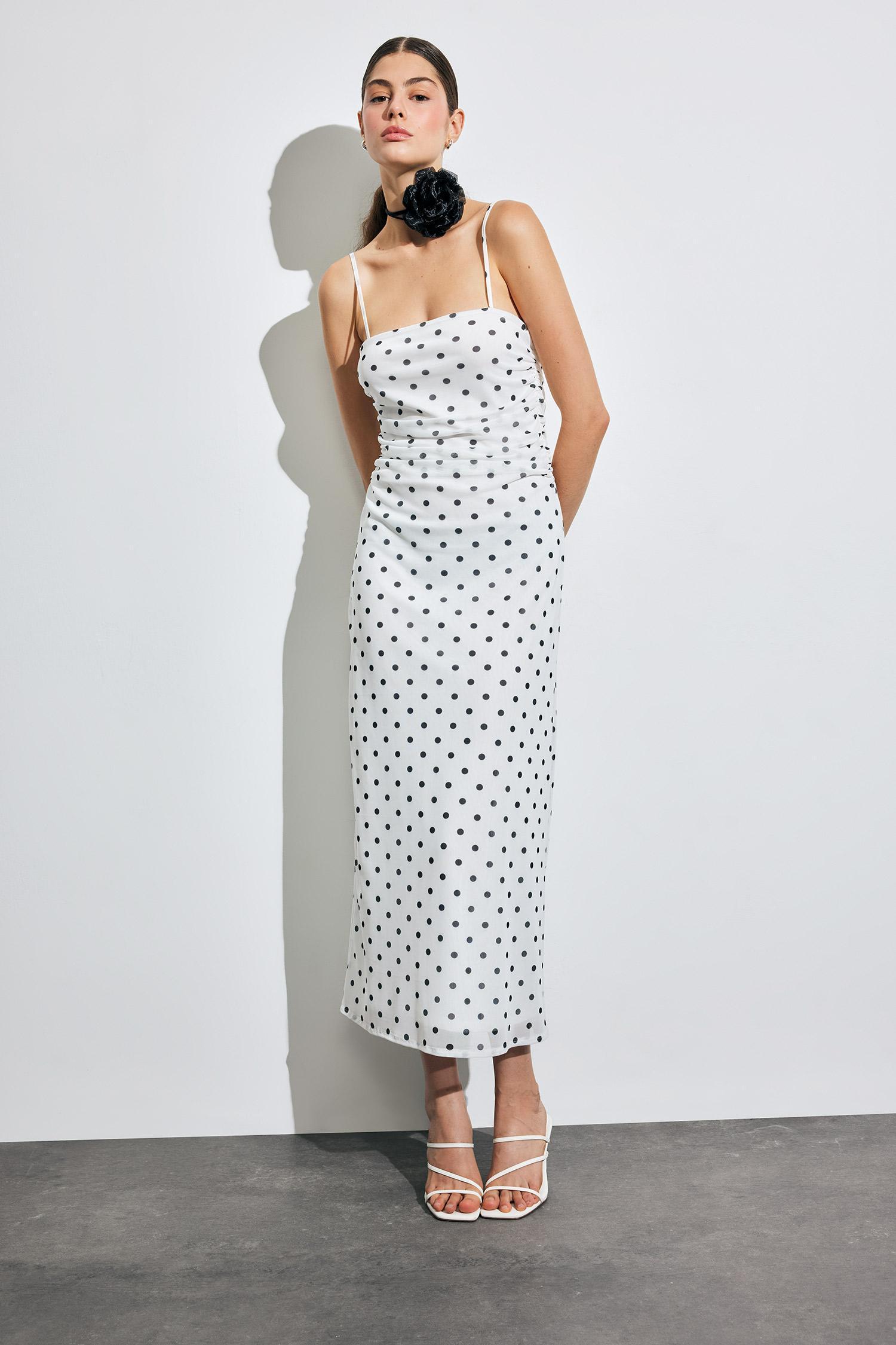 Koleksiyonda askılı elbiselerden vücuda oturan formlara, derin yakalardan geniş eteklere kadar uzanan geniş bir tasarım yelpazesi yer alıyor. Tasarımlar, nostaljik bir desen olan puantiyeyi çağdaş çizgilerle buluşturuyor. Günlük hayattan özel davetlere, ofis stilinden hafta sonu kombinlerine kadar farklı ihtiyaçlara yanıt veren parçalar, koleksiyonun çok yönlü yapısını da ortaya koyuyor.