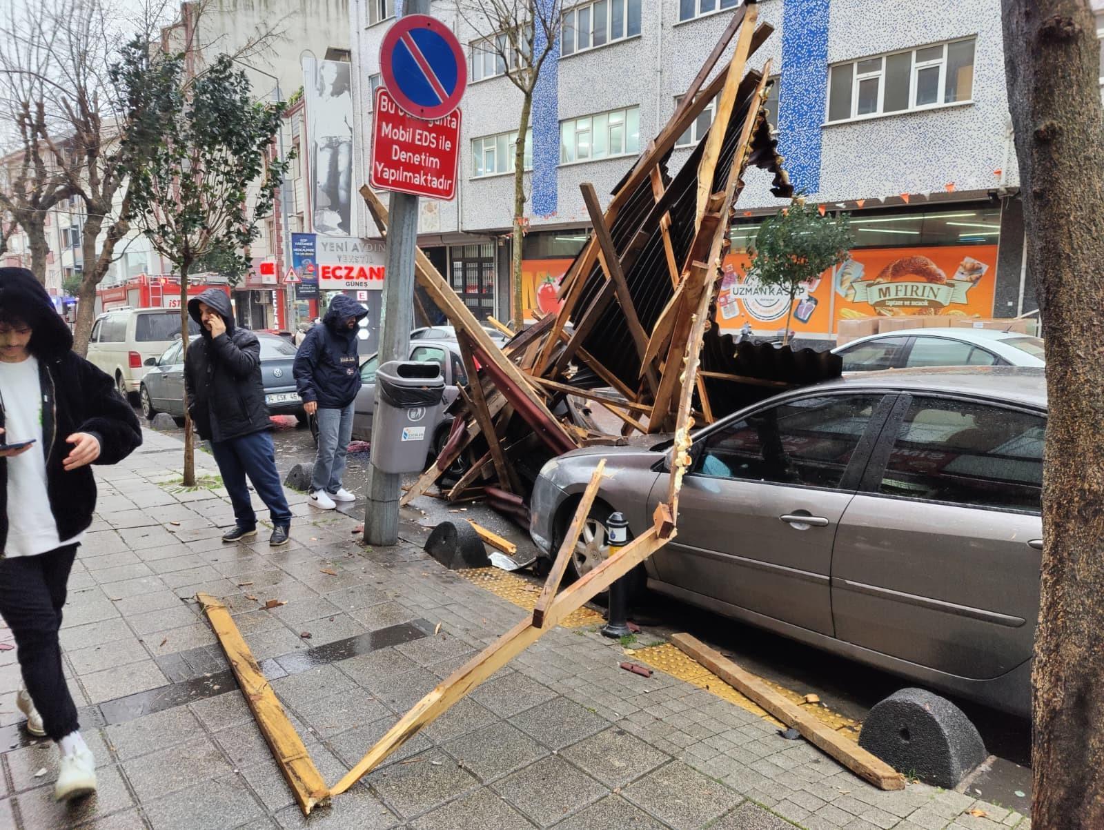 İstanbul - Esenler'de fırtınada 4 katlı binanın çatısı uçtu; 2 otomobil hasar gördü