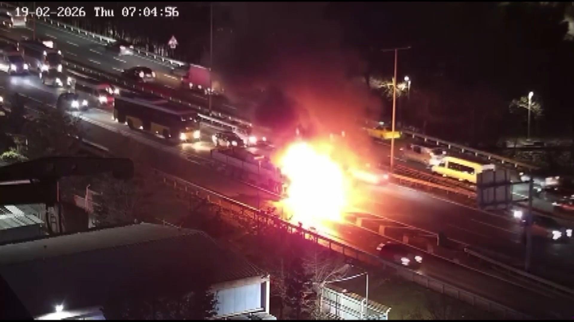 Yangın, Okmeydanı- Hasdal Bağlantı Yolu üzerinde saat 07.00 sıralarında meydana geldi. Edinilen bilgiye göre, Serdar Demir'in kullandığı TIR'ın sağ tarafından dumanlar çıkmaya başladı. TIR, kısa süre içinde alev alev yanmaya başladı. Alevleri fark eden şoför, kendini dışarı atarak itfaiye ekiplerine haber verdi. Olay yerine gelen itfaiye ekipleri yangına su ve köpük sıkarak müdahale etti. Yangın, kontrol altına alınarak söndürüldü. TIR'ın alev alev yandığı anlar kameralara yansıdı. TIR'ın kupası kullanılmaz hale geldi.