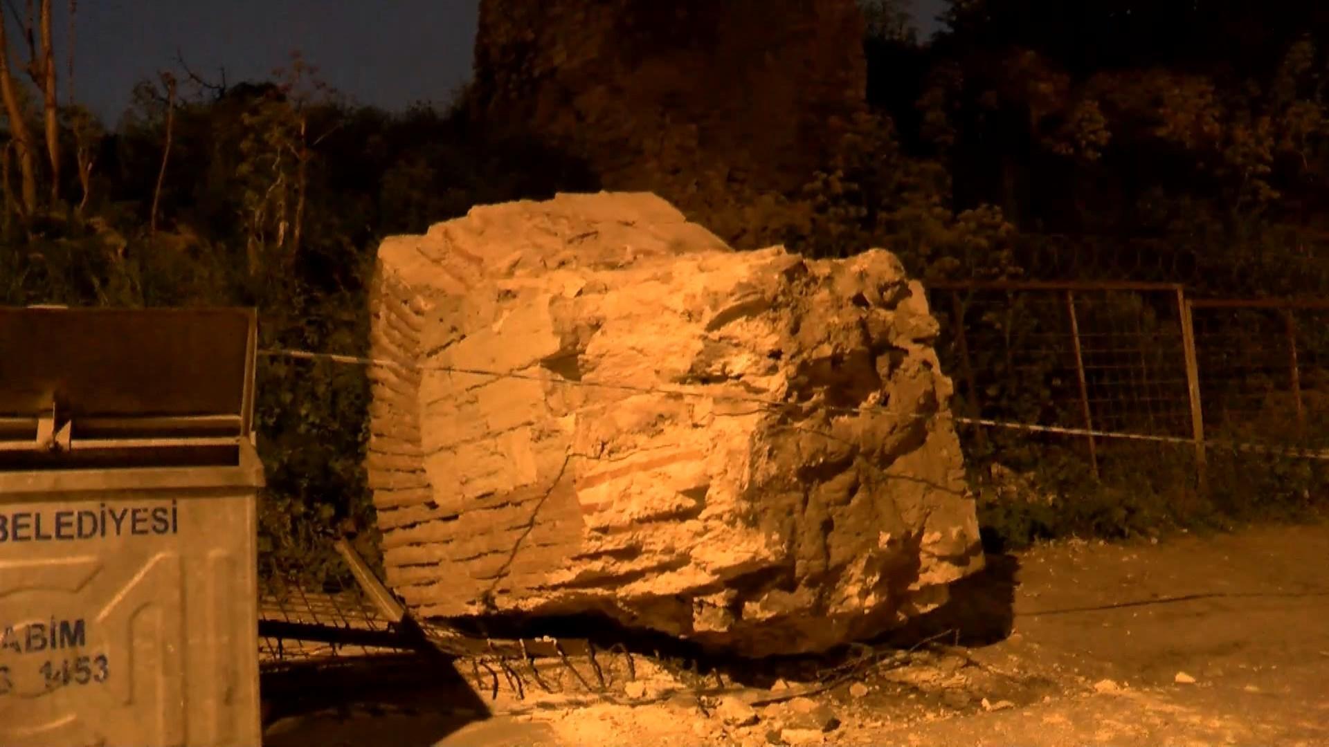 İstanbul - Deprem sonrasında tarihi Fatih Surları’ndan kopan parça yola düştü
