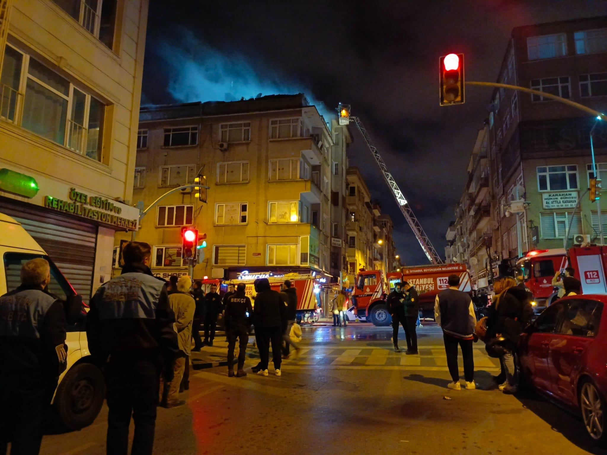İstanbul- Fatih'te 5 katlı binanın çatısı alev alev yandı