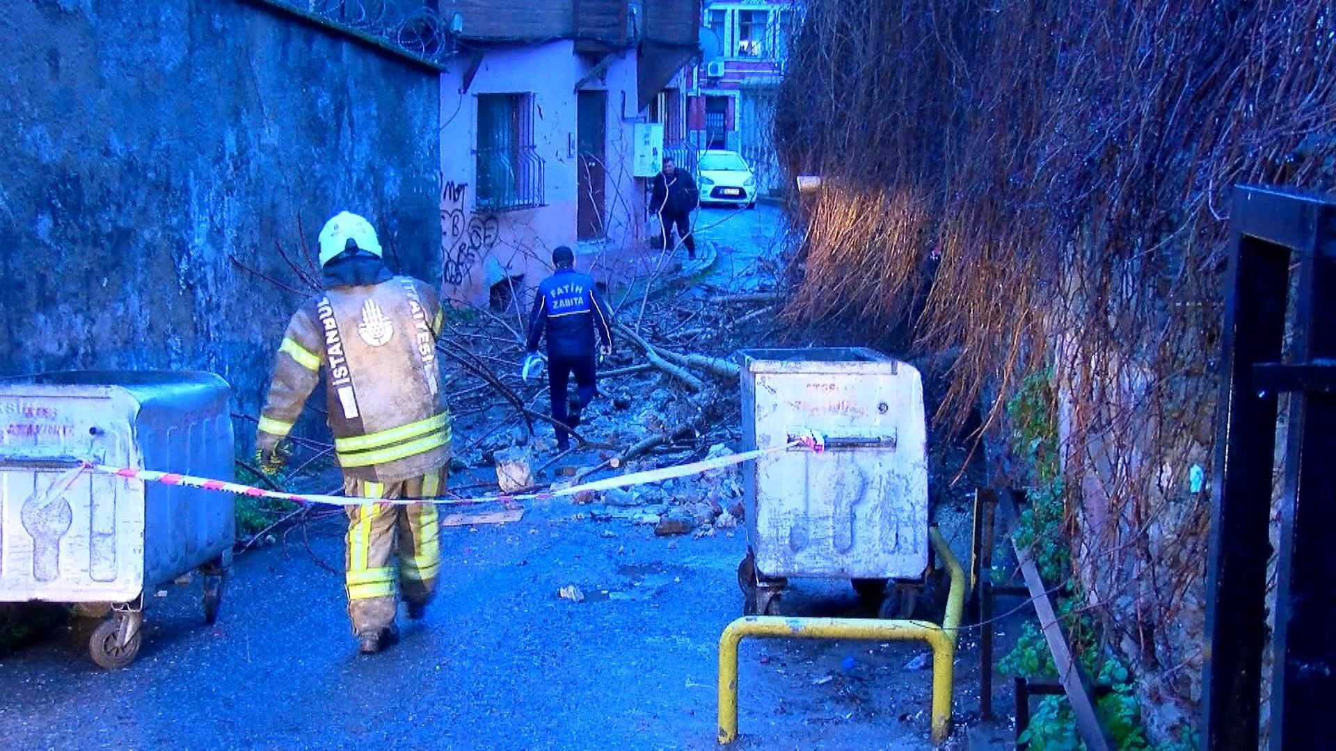 İstanbul - Fatih'te yağışın ardından istinat duvarı çöktü; sokak kapatıldı