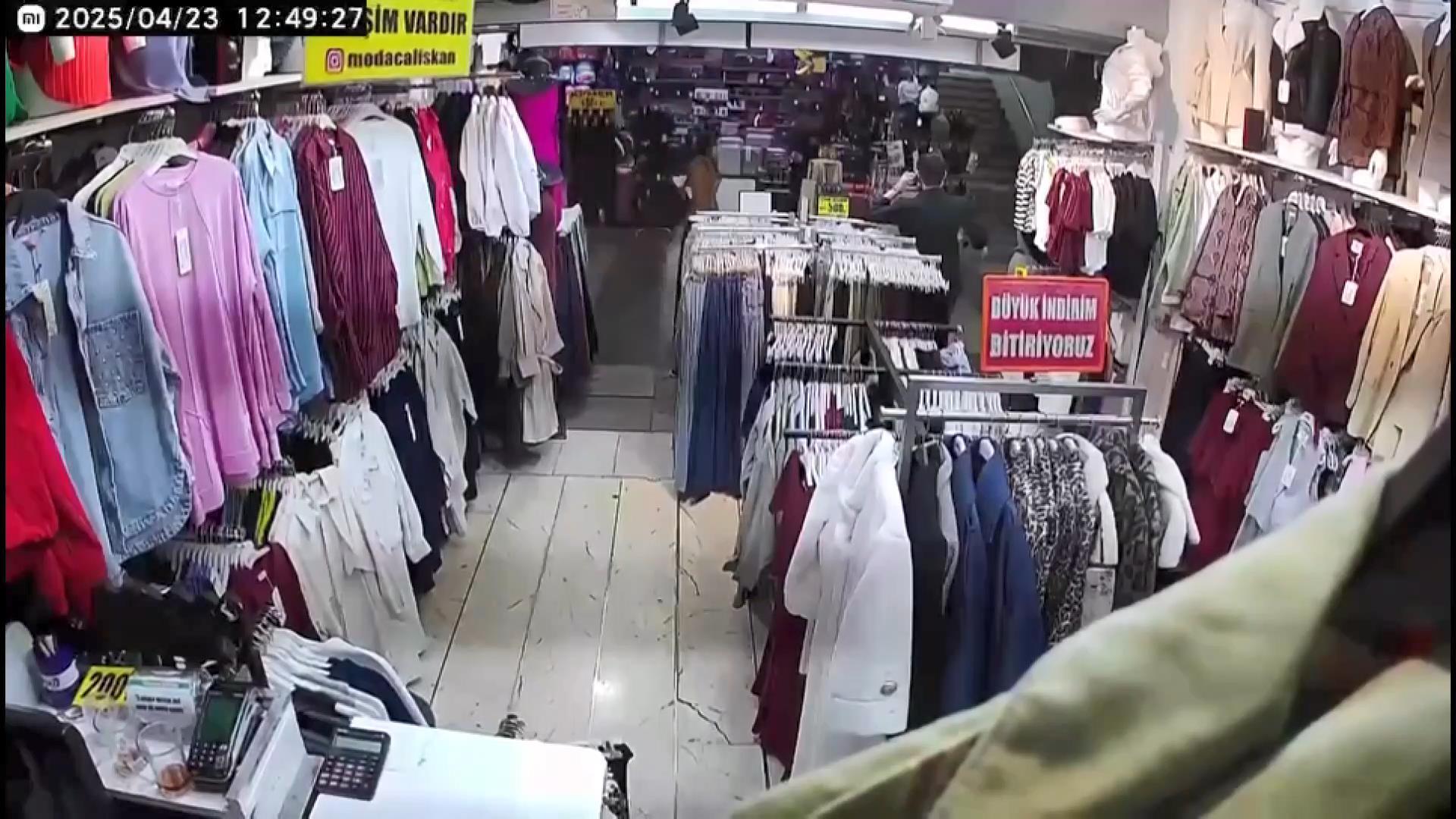 Doğan Can CESUR / İSTANBUL (DHA) - İSTANBUL'da Silivri açıklarında saat 12.49'da meydana gelen 6,2 büyüklüğündeki deprem anı Eminönü'ndeki bir giyim mağazasının güvenlik kamerasına yansıdı. Giyim mağazasında yaşananlar deprem anı saniye saniye kaydedildi. Kapalıçarşı'da ise depreme kuyumcuda yakalanan müşteri ve iş yeri çalışanlarının panikle koşarak kaçtığı anlar kameralar tarafından kaydedildi (DHA)