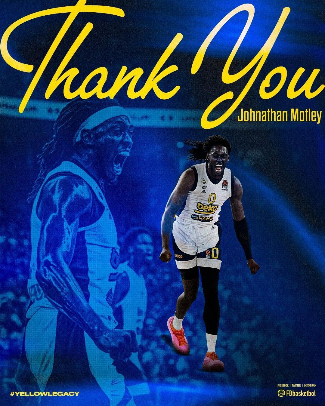 Sarı-lacivertli kulüpten yapılan açıklamada, "Fenerbahçe Beko’nun 2022-2023 ve 2023-2024 sezonu kadrolarında yer alan sporcumuz Johnathan Motley ile yollarımız ayrılmıştır. Fenerbahçe Ailesi'ne verdiği katkılardan dolayı Johnathan Motley’e teşekkür eder, kariyerinin yeni döneminde kendisine başarılar dileriz" ifadelerine yer verildi.