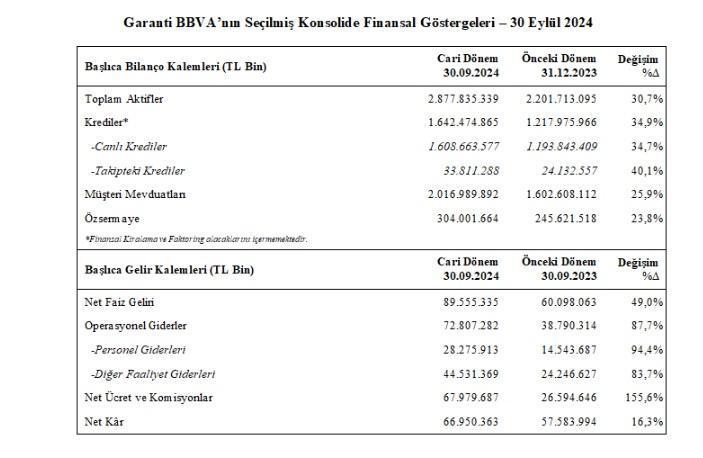 Konu hakkında değerlendirmelerde bulunan Garanti BBVA Genel Müdürü Mahmut Akten, “2024 yılının üçüncü çeyreği, enflasyonla mücadelenin ön planda olduğu ve bu doğrultuda sıkı para politikası duruşunun kararlılıkla sürdürüldüğü bir dönem olarak şekillendi. Makro ihtiyati tedbirlerle pekiştirilen para politikası, fonlama maliyetleri üzerindeki baskının devam etmesine yol açtı. Bu durum, Türk lirası kredi-mevduat marjları üzerindeki baskının daha da yoğunlaşmasına neden oldu. Ancak, müşteriyi önceliklendiren büyüme yaklaşımımız, ekonomik koşulların sıkılaştığı dönemlerde dahi bizi farklı kılmayı sürdürüyor. Bu yaklaşımımız müşterilerimizle kurduğumuz uzun vadeli ilişkiler ve onların öncelikli banka tercihi olmamız sayesinde, bu çeyrekte de özel bankalar arasında Türk lirası kredilerde ve Türk lirası müşteri mevduatlarında liderliğimizi korumayı başardık. Konut kredisi, ihtiyaç kredisi, taşıt kredisi ve kredi kartlarında aldığımız güçlü pazar payı ile TL kredi büyüklüğümüzü 1 trilyon TL’nin üzerine çıkardık” dedi.