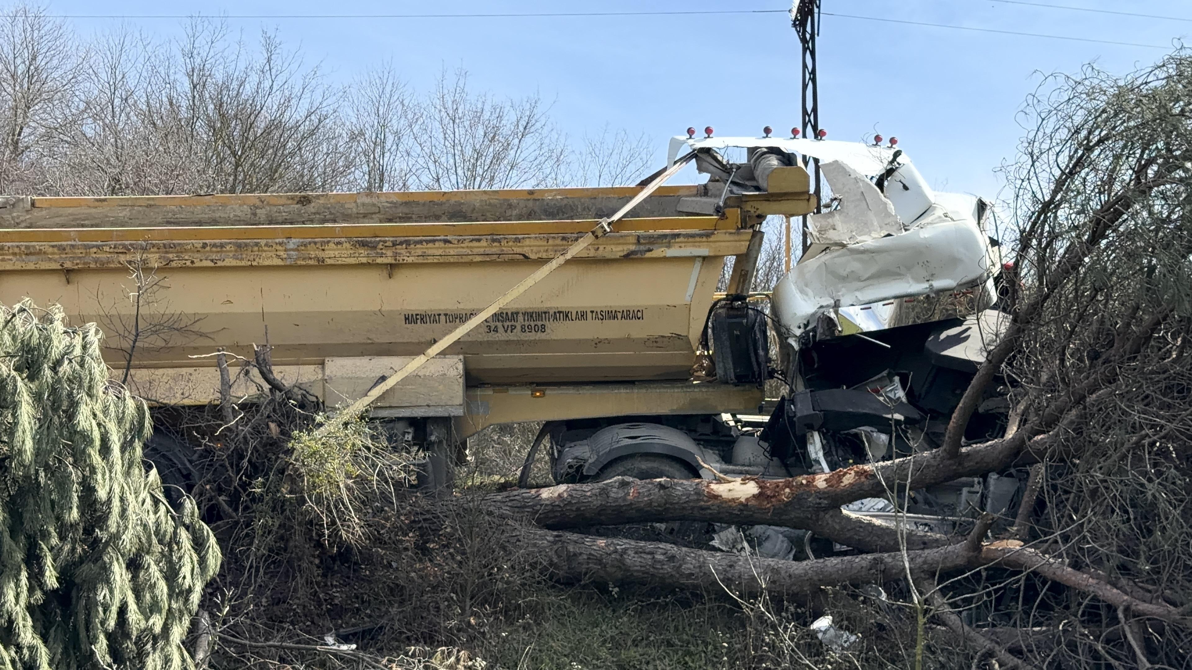 Kaza, saat 11.30 sıralarında Arnavutköy Bolluca Mahallesi Saraybosna Caddesi'nde meydana geldi. İddiaya göre, Mehmet Can Erbay yönetimindeki 34 VP 8908 plakalı hafriyat kamyonu, karşı yönden gelen araçla çarpışmamak için manevra yaptı.Şoförünün direksiyon hakimiyetini kaybettiği kamyon yoldan çıkarak önce ağaçlara ardından da yol kenarındaki bariyerlere çarparak durabildi. Çarpmanın etkisiyle kamyonun sürücü kabini hurdaya dönerken, şoför Mehmet Can Erbay kazada hafif yaralandı. İhbar üzerine olay yerine itfaiye, polis ve sağlık ekipleri sevk edildi. Yaralanan şoför tedbir amaçlı ambulansla hastaneye kaldırılırken, polis ekipleri kazayla ilgili inceleme başlattı.(DHA)