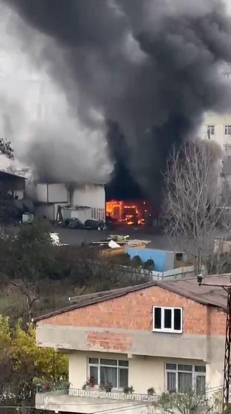 İstanbul- Arnavutköy'de TIR tamirhanesinde yangın -1