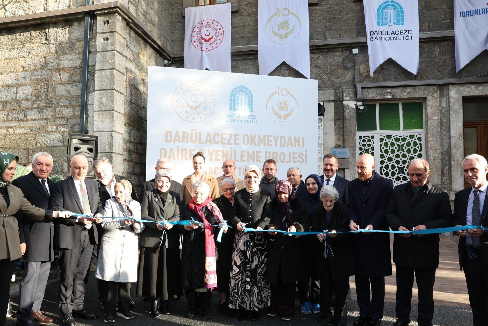 Darülaceze'de yenileme çalışmaları tamamlanan 'Okmeydanı Daire Yenileme Projesi'nin açılış töreni Aile ve Sosyal Hizmetler Bakanı Mahinur Özdemir Göktaş'ın katılımıyla gerçekleştirildi. Bakan Göktaş törenin ardından Darülaceze'de kalan kişilere ziyarette bulundu.