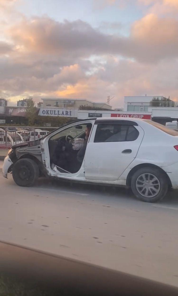 Olay, öğle saatlerinde Kayabaşı Mahallesi Gökdemir Caddesi'nde meydana geldi. Hasarlı otomobilini tamirhaneye götüren sürücü trafikte diğer sürücülerin dikkatini çekti. O anlar yoldan geçen başka bir sürücü tarafından cep telefonuyla kaydedildi. Görüntülerde, seyir halindeki sürücünün kullandığı otomobilin kapısının olmadığı ve cep telefonu ile konuşarak yolculuk yaptığı anlar yer aldı. (DHA)