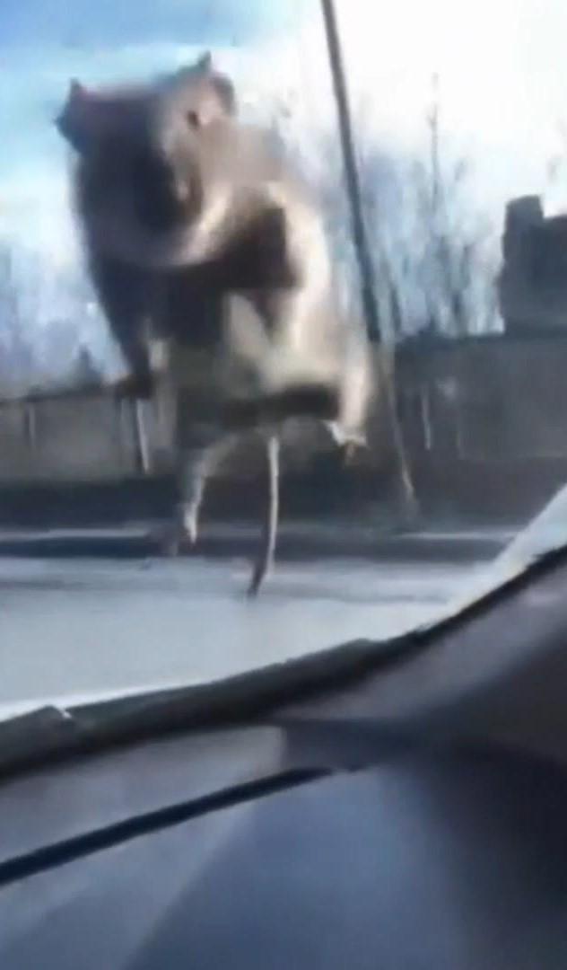Vehbi DEMİR / İSTANBUL, (DHA)- BAŞAKŞEHİR'de bir sürücü üst geçidin altından gectigi sırada aracın camına fare atladı. Tırmanarak aracın tavanına çıkan fare cep telefonu kamerasına yansıdı. Sürücünün tüm çabalarına rağmen aracın üzerinden inmeyen fare, sürücü polis çevirmesine girince araçtan atlayarak kaçtı.