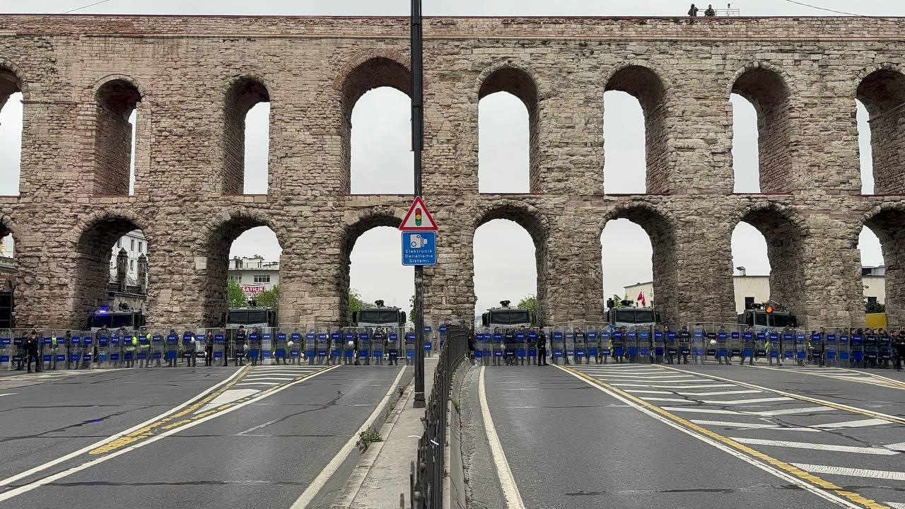 Bozdoğan Kemeri'nde polis adeta yığınak yaptı. TOMA ve bariyerlerle yol kesilirken çevredeki keskin nişancılar dikkat çekti. Yüzlerce polis kemer çevresinde bekliyor.